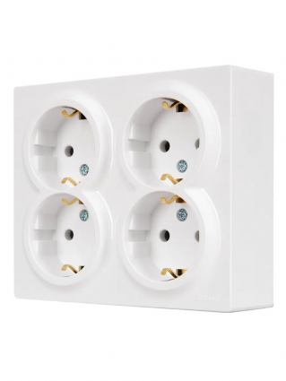 Розетка четверная с/з закрытый корпус ПБТ белый LETO-LEZARD. Корпус выполнен из негорючего поликарбоната (РС). Внутренний механизм выполнены из негорючего поликарбоната, выдерживающий 850°С. Токопроводящие элементы выполнены из MS70 (70% меди,30% цинка