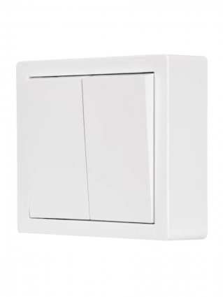 Выключатель двойной белый LETO-LEZARD. Корпус выполнен из негорючего поликарбоната (РС). Внутренний механизм выполнены из негорючего поликарбоната, выдерживающий 850°С. Токопроводящие элементы выполнены из MS70 (70% меди,30% цинка). Контакты изготовлен