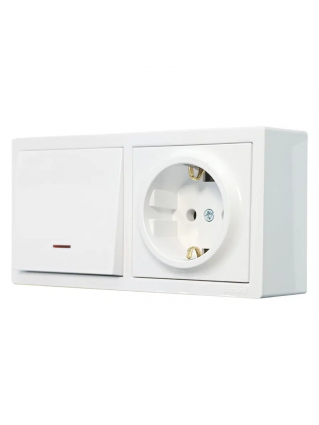 Выключатель с подсветкой и розетка с/з, белый горизонталь LETO-LEZARD. Корпус выполнен из негорючего поликарбоната (РС). Внутренний механизм выполнены из негорючего поликарбоната, выдерживающий 850°С. Токопроводящие элементы выполнены из MS70