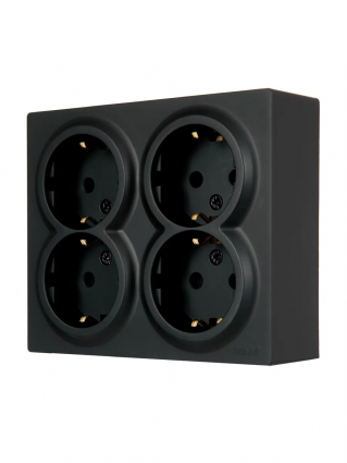 Розетка четверная с/з закрытый корпус ПБТ чёрный бархат LETO-LEZARD. Корпус выполнен из негорючего поликарбоната (РС). Внутренний механизм выполнены из негорючего поликарбоната, выдерживающий 850°С. Токопроводящие элементы выполнены из MS70