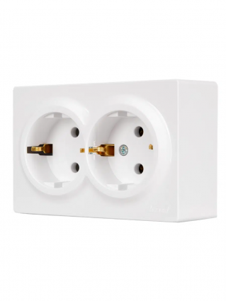 Розетка двойная с/з закрытый корпус ПБТ белый LETO-LEZARD. Корпус выполнен из негорючего поликарбоната (РС). Внутренний механизм выполнены из негорючего поликарбоната, выдерживающий 850°С. Токопроводящие элементы выполнены из MS70 (70% меди,30% цинка).