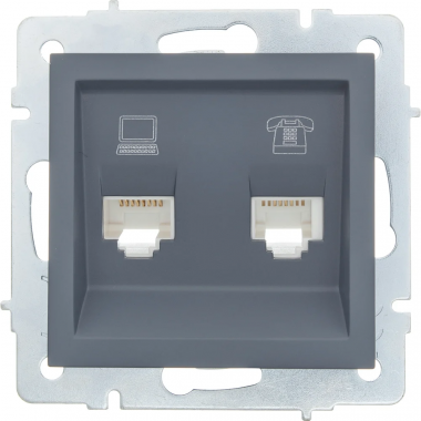Розетка телефонная двойная евро графит (10шт/120шт) VESNA