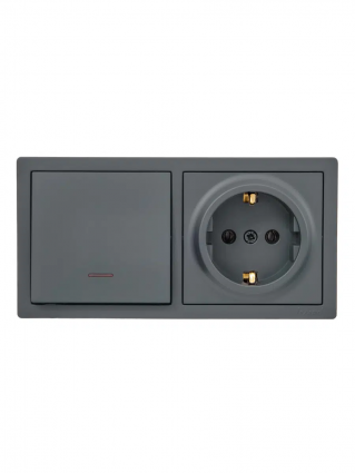 Выключатель с подсветкой и розетка с/з, графит горизонталь LETO-LEZARD. Корпус выполнен из негорючего поликарбоната (РС). Внутренний механизм выполнены из негорючего поликарбоната, выдерживающий 850°С. Токопроводящие элементы выполнены из MS70
