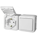QUTEO Блок: Выключатель + розетка с заземлением со шторками наружный белый IP44 (5)