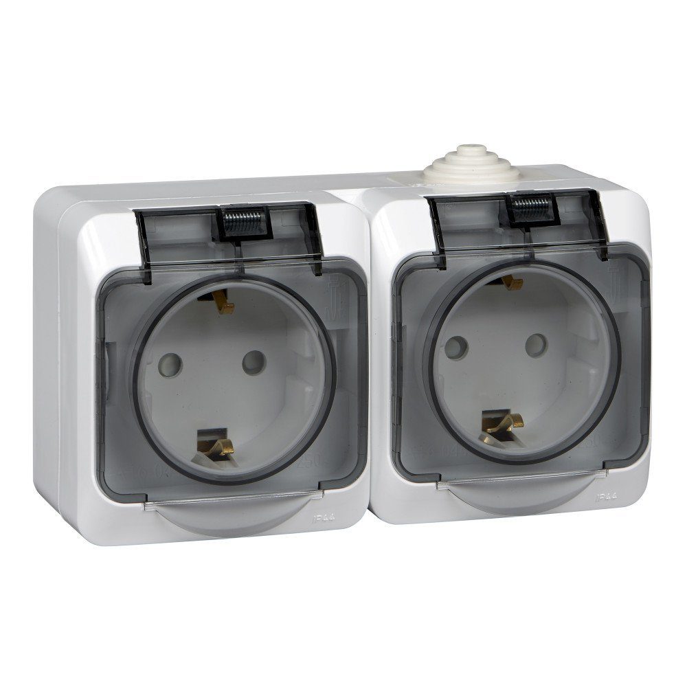 Розетка Systeme Electric (ранее Schneider Electric) ЭТЮД (белый, открытой установки) двухместная с заземлением и шторками предназначена для применения в сетях до 250В, на ток до 16А. Двухместная розетка позволяет подключить два устройства в одном месте. Шторки обеспечивают дополнительную безопасность. Розетка отлично подходит для ванной комнаты (IP44). Сделано в России.