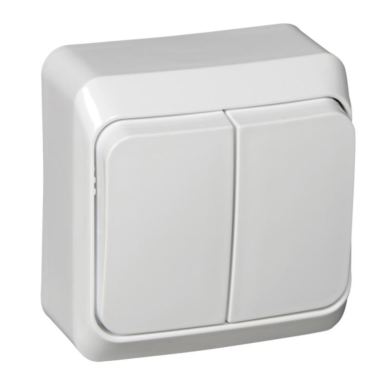 Выключатель Systeme Electric (ранее Schneider Electric) ЭТЮД (белый, открытой установки) двухклавишный предназначен для применения в сетях до 250В, на ток до 10А. Две клавиши позволяют управлять двумя источниками света с одной точки. Он прост в установке и удобен применении. Сделано в России.