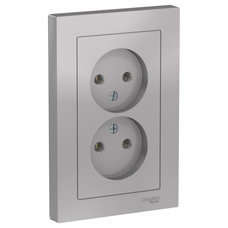 ATLASDESIGN РОЗЕТКА двойная без заземления,16А, в сборе, АЛЮМИНИЙ Systeme Electric (1/6)