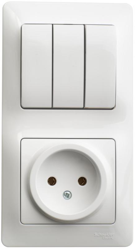 GLOSSA БЛОК: РОЗЕТКА + 3кл. ВЫКЛЮЧАТЕЛЬ БЕЛЫЙ Systeme Electric (1/9)