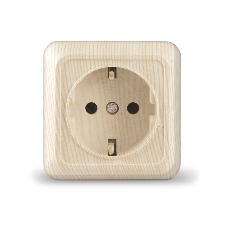 Розетка 1ОП с/з сосна керамика ОЛИМП UNIVersal (10/200)