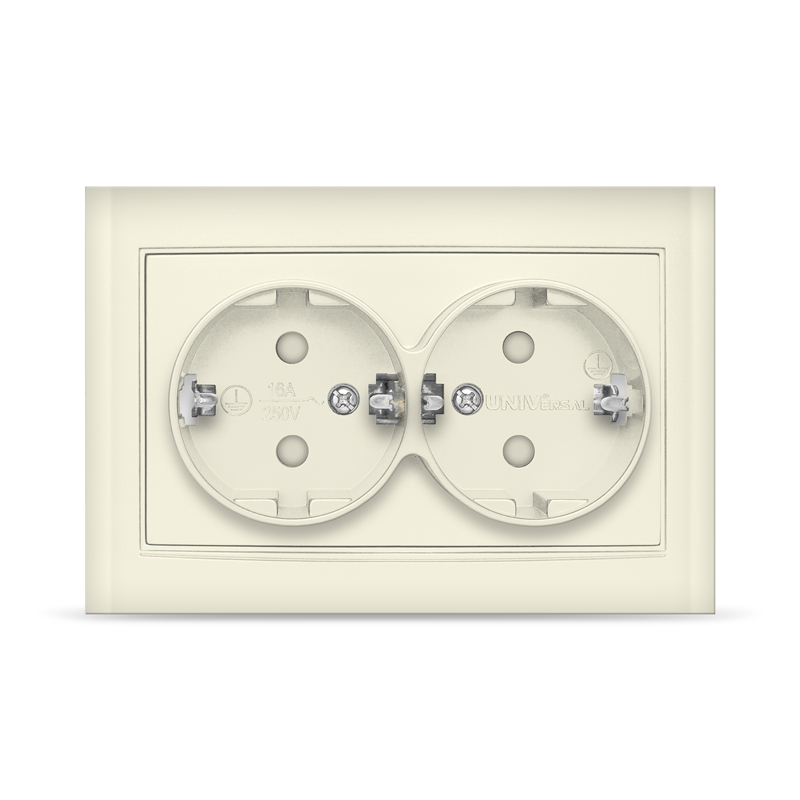 Розетка 2СП с/з, з/ш слоновая кость (Ivory) БРИЛЛИАНТ UNIVersal (10/100)