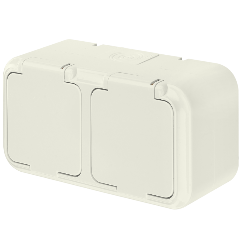 Евророзетка 2 ОП IP54 бежевый с крышкой брызгозащищенная Пралеска Аква Минск (1/4/16)