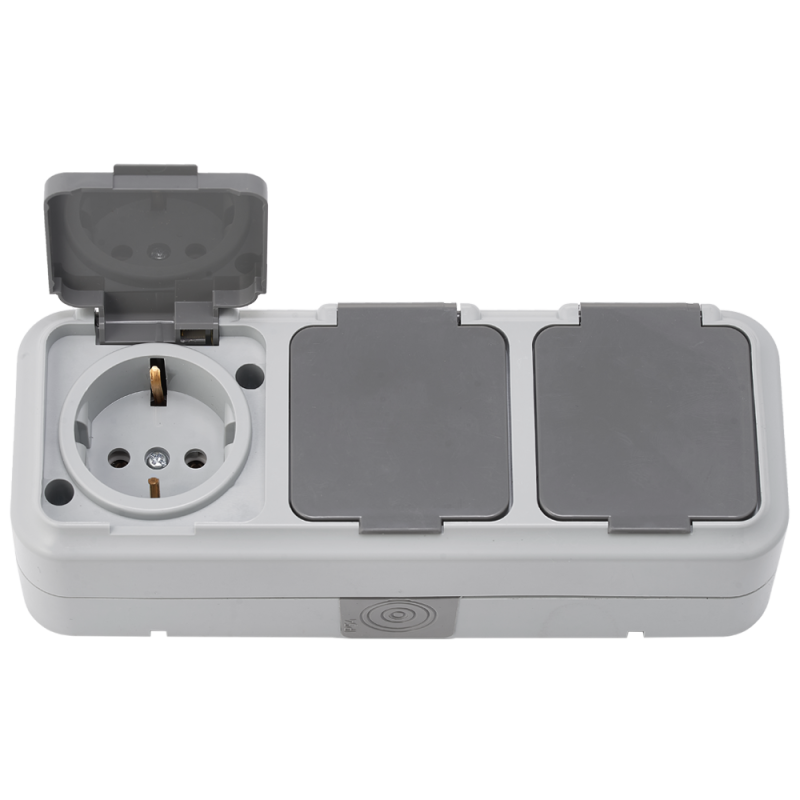 Евророзетка 3 ОП IP54 серый с крышкой брызгозащищенная Пралеска Аква Минск (1/21)