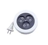 ► Конструкция удлинителей-рулеток предусматривает полную или частичную смотку сетевого шнура внутрь корпуса. Для удобства смотки на нижней части корпуса есть специальная ручка.