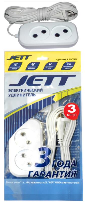 Удлинитель 2 гн. 3м. б/з (ПВС 2х0,75) ДЖЕТТ (1/45)