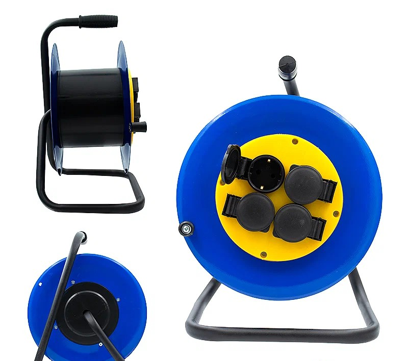 Катушка для удлинителя предназначена для сборки и хранения на ней провода. Корпус изделия изготовлен из прочного и эластичного пластика. Катушка снабжена четырьмя евророзетками без заземления. Барабан изделия установлен на металлической опорной подставке с обрезиненной ручкой для переноски, а так же оснащен торцевой намоточной ручкой, с помощью которой можно разматывать и наматывать удлинитель. Характеристики: Рабочее напряжение: 220-250В Номинальный ток: 16А Класс защиты: IP20 Внешний диаметр: 300 мм