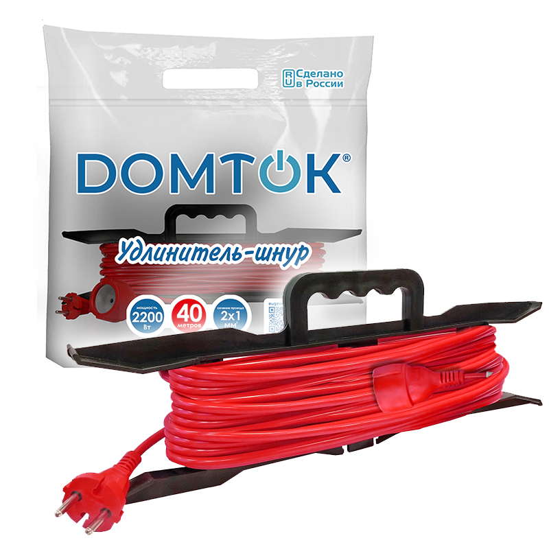 Удлинитель-шнур на рамке "DOMTOK" ПВС 2*1, 2,2кВт, б/з 40м (1/8)