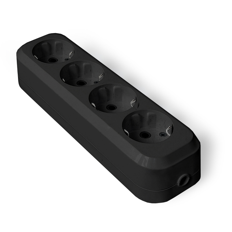 Колодка удлинителя 4 гн. с/з АБС-пластик черный UNIVersal (1/100)