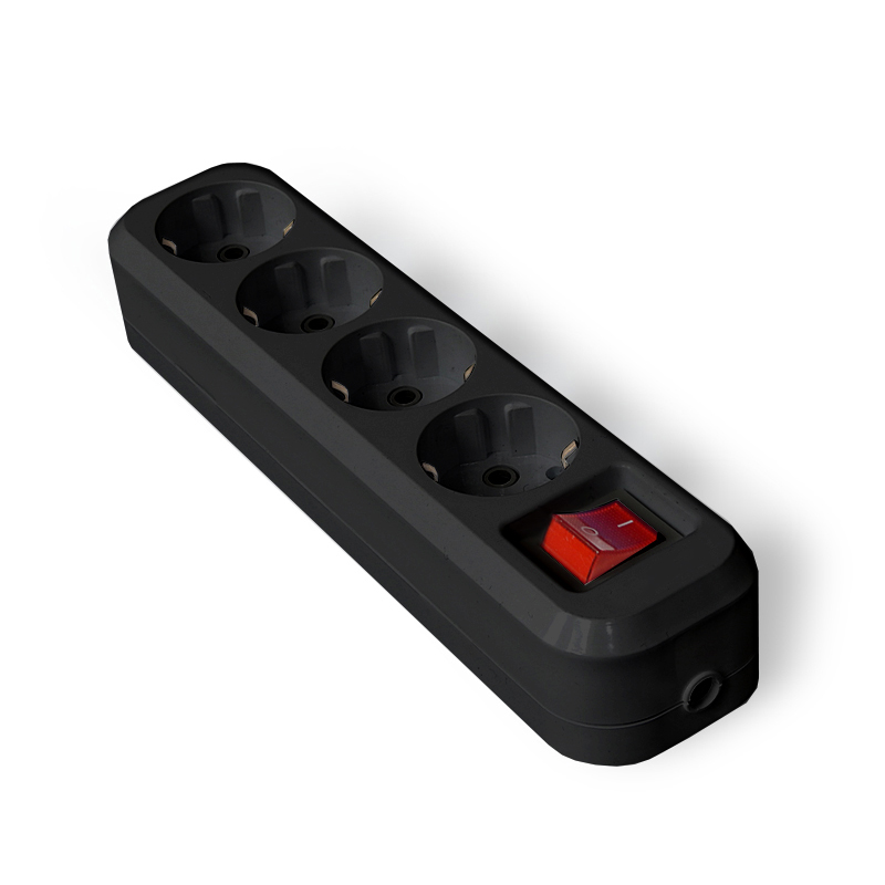 Колодка удлинителя 4 гн. с/з АБС-пластик с выкл. черный UNIVersal (1/100)