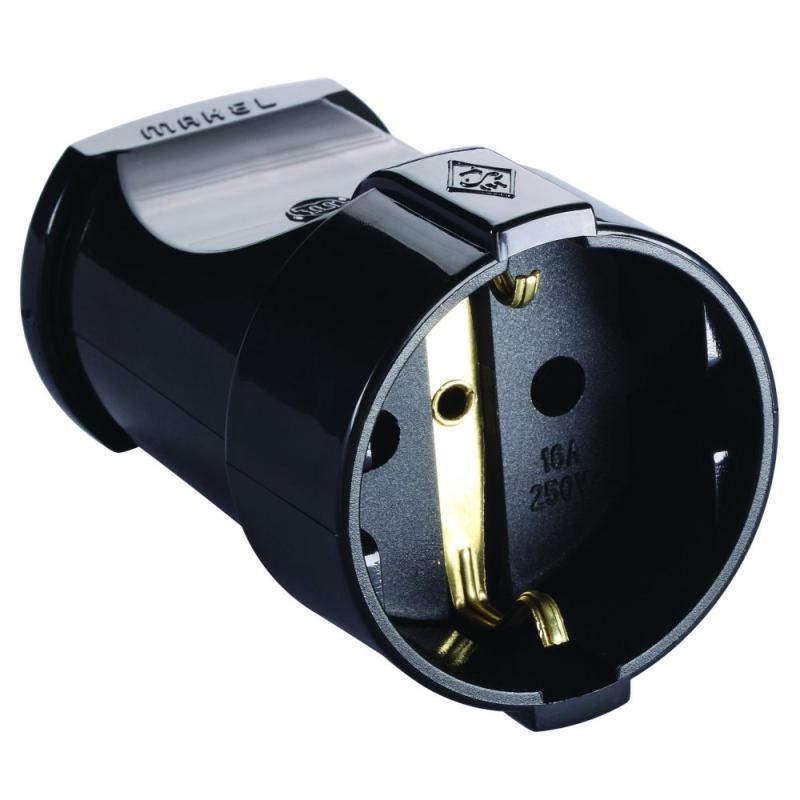 Штепсель 1 гн с/з черн. Makel (1/50/200)