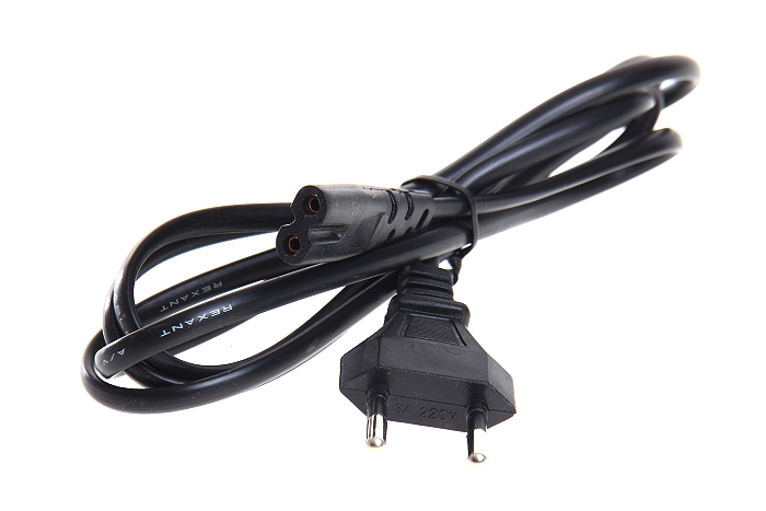 Шнур сетевой 1.8 м 2x0.75 мм² REXANT предназначен для подключения к сети переменного тока (AC) с напряжением 220 B аудио- и видеоаппаратуры, источников питания ноутбуков, игровых консолей и других приборов, имеющих штыревой сетевой разъем типа С8 (известен из-за его формы как «восьмерка»). Данный сетевой шнур (IEC cord) оснащен с одной стороны литой неразборной плоской вилкой (евро), с другой — литым гнездовым неполяризованным разъемом типа C7 (евроразъем) и двухжильным проводом с сечением жил 0.75 мм².
