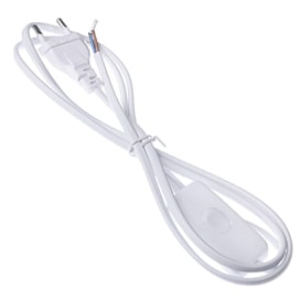Ecola base Шнур 2м (1.5м+0.5м) с выключателем и плоской вилкой Белый сечение 0.5mm 2.5А 230V