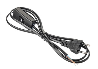 Ecola base Шнур 2м (1.5м+0.5м) с выключателем и плоской вилкой Черный сечение 0.5mm 2.5А 230V