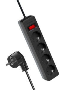Черный сетевой фильтр с коротким проводом 1,5м на 4 гнезда с двумя защитами для гаджетов и дорогой техники – варистор для защиты от «плохого» тока и терморазмыкатель для защиты от перегрузки и замыкания в сети. Сзади специальное крепление – можно повесить на стену. Корпус из негорючего полипропилена, кабель ПВС 3х0,75мм (с заземлением). Контактная группа из латуни не деформируется со временем. Максимальная мощность подключения 10A 2200Вт – хватит для нескольких устройств одновременно. 5 лет гарантии
