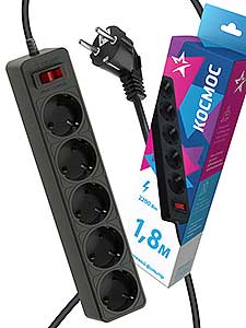 Черный сетевой фильтр 1,8м на 5 гнезд с двумя защитами для гаджетов и дорогой техники – варистор для защиты от «плохого» тока и терморазмыкатель для защиты от перегрузки и замыкания в сети. Сзади специальное крепление – можно повесить на стену. Корпус из негорючего полипропилена, кабель ПВС 3х0,75мм (с заземлением). Контактная группа из латуни не деформируется со временем. Максимальная мощность подключения 10A 2200Вт – хватит для нескольких устройств одновременно. 5 лет гарантии