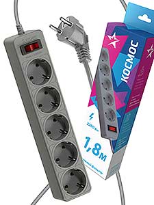 Серый сетевой фильтр 5м на 5 гнезд с двумя защитами для гаджетов и дорогой техники – варистор для защиты от «плохого» тока и терморазмыкатель для защиты от перегрузки и замыкания в сети. Сзади специальное крепление – можно повесить на стену. Корпус из негорючего полипропилена, кабель ПВС 3х0,75мм (с заземлением). Контактная группа из латуни не деформируется со временем. Максимальная мощность подключения 10A 2200Вт – хватит для нескольких устройств одновременно. 5 лет гарантии