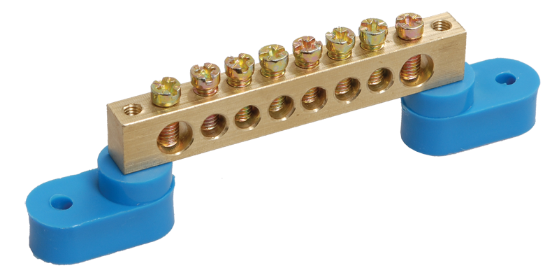Шины с изолятором типа ШНИ предназначены для электрического и механического соединения нулевых, защитных и фазных проводников. Конструктивно шины ШНИ выполнены из латунной шины, установленной на пластиковый изолятор или в изолятор, изготовленный из самозатухающего пластика.