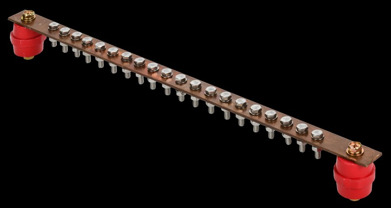 Шина заземляющая главная товарного знака IEK (далее – шина) предназначена для объединения нулевых защитных и нулевых рабочих совмещенных проводников питающей линии, выводов контура заземления, заземляющих проводников, проводников системы уравнивания потенциалов. Закрепляется на пластиковых изоляторах.