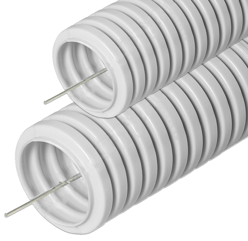 Труба гофрированная легкая с зондом СЕРАЯ ПВХ 20 мм (бухта - 100м) ELASTA IEK