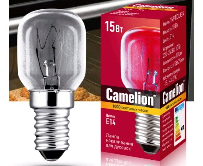 Лампа накаливания 15W E14 230V T25 PT/CL для духовок Camelion (1/10)
