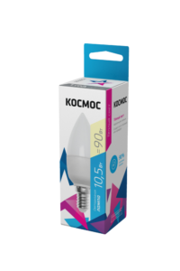 Лампочка в форме «свеча». Мощность 10,5 Вт — аналог лампы накаливания 90 Вт.