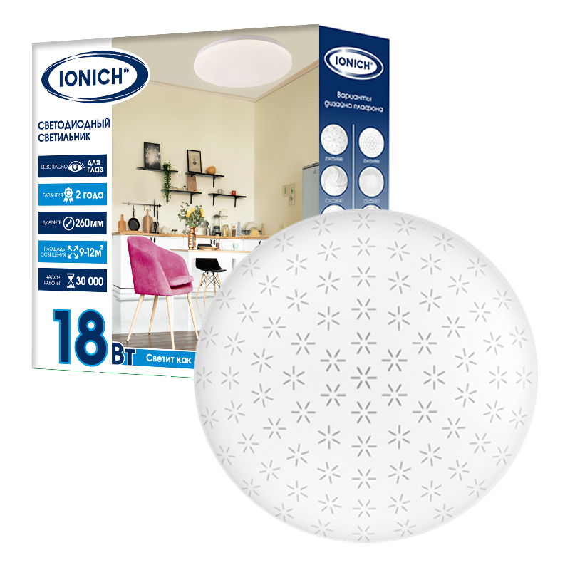 Светодиодные декоративные светильники TM IONICH предназначены для внутреннего освещения административных, общественных и жилых помещений, ресторанов, отелей и кафе, и рассчитаны на переменное напряжение 220В, 50 Гц