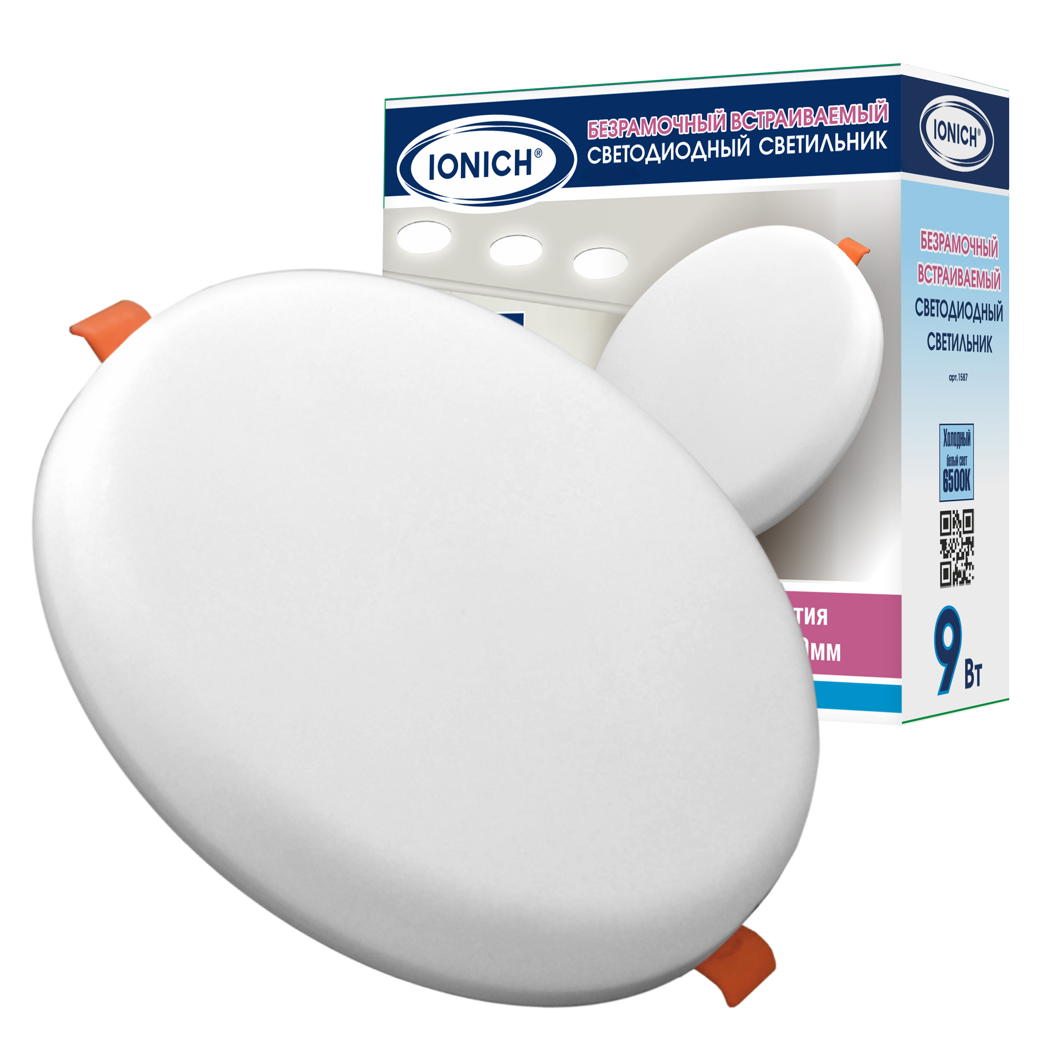 Светильники светодиодные безрамочные встраиваемые ТМ IONICH 12Вт 960Лм 230В 4000K 120мм IP20 (1/100)