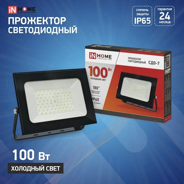 Линейка влагозащищенных светодиодных прожекторов СДО-7 ТМ IN HOME представлена в диапазоне мощностей от 20Вт до 100Вт. Благодаря высокому уровню герметичности (степень защиты IP65) прожектор может использоваться для экономичного наружного освещения памятников и инсталляций, рекламных объектов, фасадов зданий, детских/спортивных площадок, промышленных и складских помещений, внутренних дворов, придомовых территорий и др.Оборудован поворотным кронштейном, позволяющим легко регулировать угол освещения.