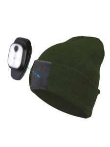 Шапка со съёмным LED-фонариком. Цвет — камуфляж. Фонарик работает до 5 часов без подзарядки, и легко снимается с шапки: благодаря клипсе его можно закрепить на велосипед, собачий ошейник (для этого есть режим красного мигания) или на другую одежду.