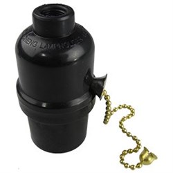 Патрон Е27 карболитовый подвесной с выключателем на цепочке черный base Ecola