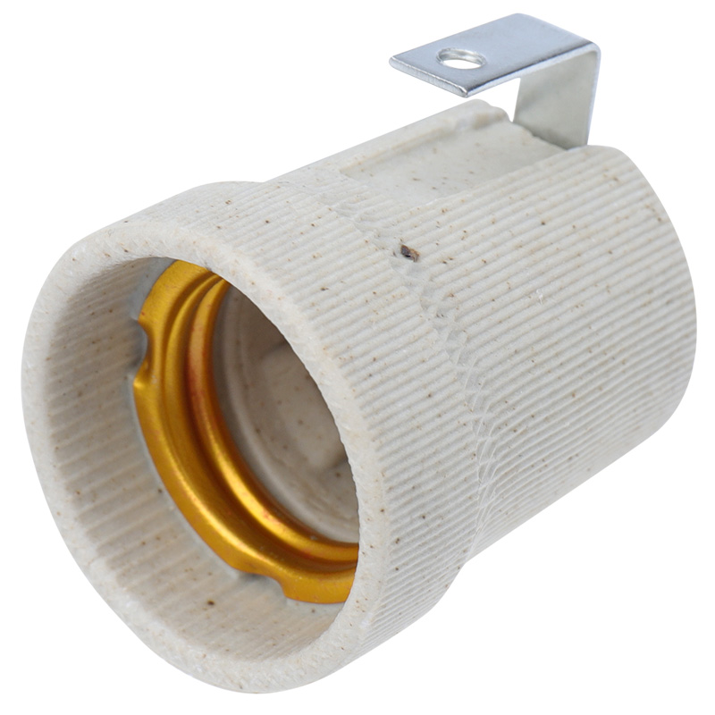 Патрон керамический Е27 с держателем предназначен для механического крепления и подключения к питающей сети источника света,  предназначается для установки в осветительные приборы различных типов ламп, обладающих форматом цоколя Е-27