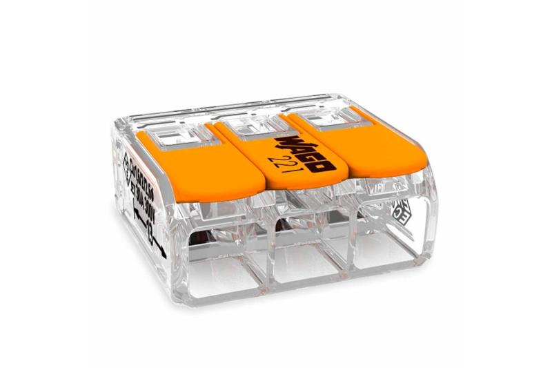 Клемма универсальная серии 221 с зажимами-рычагами.Является многоразовой ,подходит для различного кабеля.