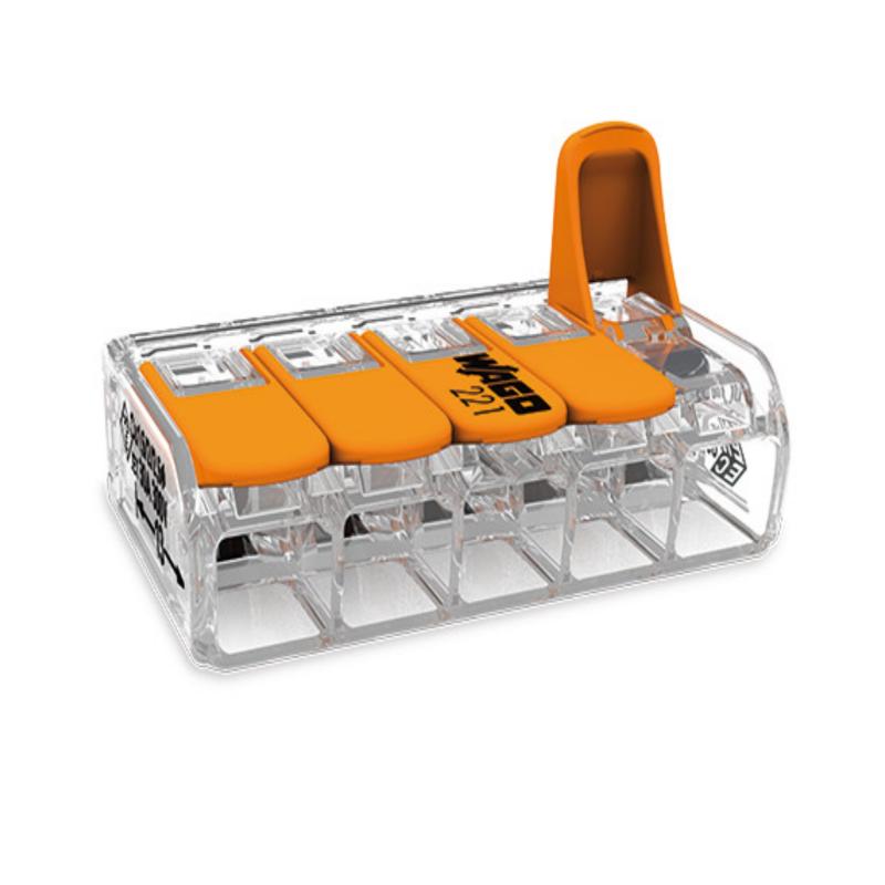 Клемма универсальная серии 221 с зажимами-рычагами.Является многоразовой ,подходит для различного кабеля.