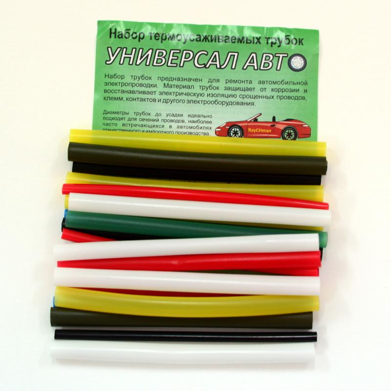 Набор «Универсал Авто» скомплектован из термоусадочных трубок Raychman® PBF и RBF и максимально перекрывает диаметры проводов и цвета, характерные для автомобильной проводки. Для удобства трубки нарезаны по 10 см.