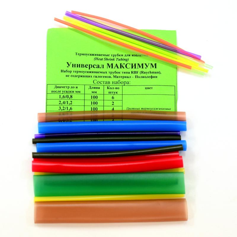 Набор «Универсал Максимум» целесообразен при малой потребности в трубках различных диаметров и цветов, когда нет необходимости покупать трубку целыми отрезками длиной от 1 метра. Наборы представлены в различных цветовых комплектациях.