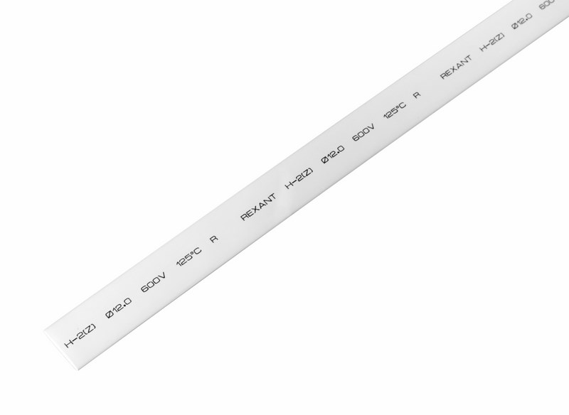 Термоусадочная трубка 12,0/6,0 мм 1 м REXANT белая — один из самых распространенных термоусаживаемых материалов. Изготовлены термоусадочные трубки из высокотехнологичного материала — полиолефина. Трубка имеет свойство подавления горения, то есть она неспособна поддерживать горение, в отсутствии открытого огня затухает самостоятельно и неспособна воспламеняться. Начальный диаметр трубки составляет 12,0 мм, после усадки 6,0 мм.