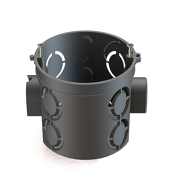 Коробка монтажная является сопутствующим продуктом при установке розеток и выключателей.
