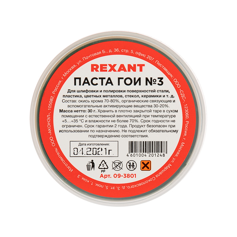 Паста ГОИ полировальная № 3, баночка 30 г REXANT (10)