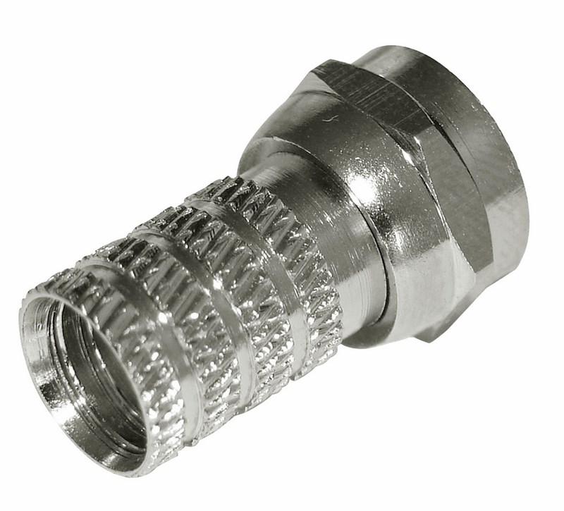 РАЗЪЕМ F-разъем RG-6 "AB" PROconnect предназначен для соединения коаксиального кабеля волновым сопротивлением 75 Ом с телевизионным и видеооборудованием (ресиверы, телевизоры, всевозможная видеоаппаратура и т.д.). Разъем данного вида не имеет непосредственного штекера, поэтому роль штекера выполняет центральная жила кабеля, что позволяет избежать дополнительных потерь сигнала. F-коннектор изготовлен из никелированного металла. Разъем устанавливается на кабель методом накрутки гильзы разъема на внешнюю оболочку кабеля после соответствующей зачистки контактов и не требует применения каких-либо специальных инструментов. F-штекер выступает в роли своеобразного экрана за счет накручивания на оплетку кабеля для выполнения роли электрического контакта.