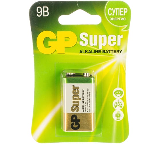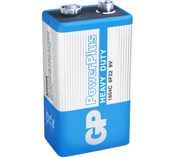 Батарейка 6F22 крона 1 в спайке солевая GP1604C-S1 SR1 GP PowerPlus HEAVY DUTY (1/10/500)
